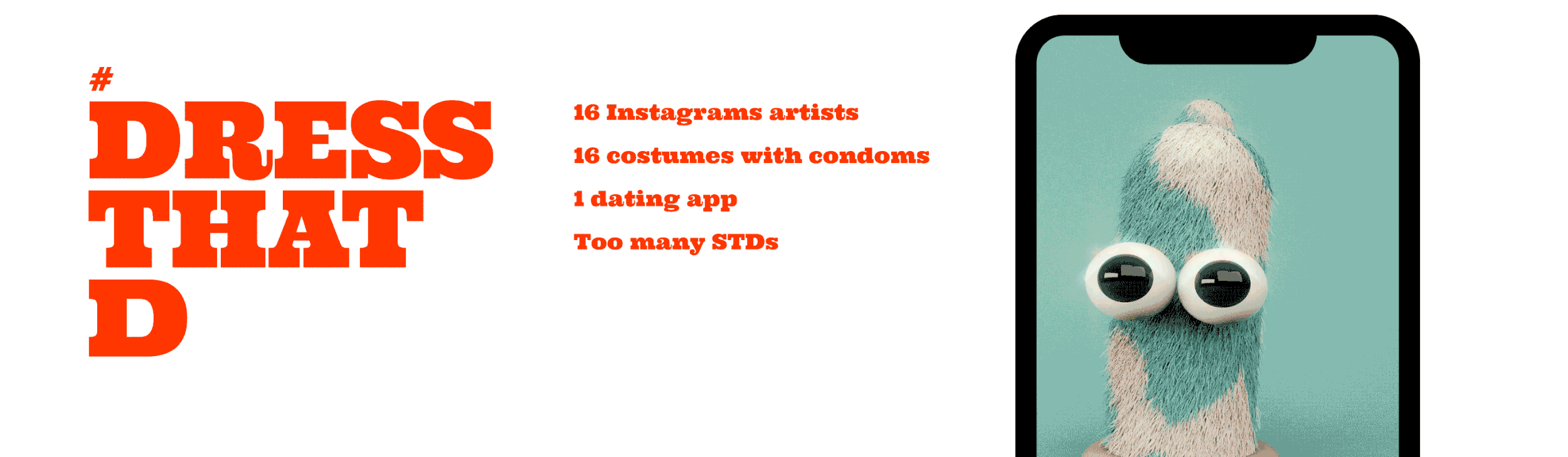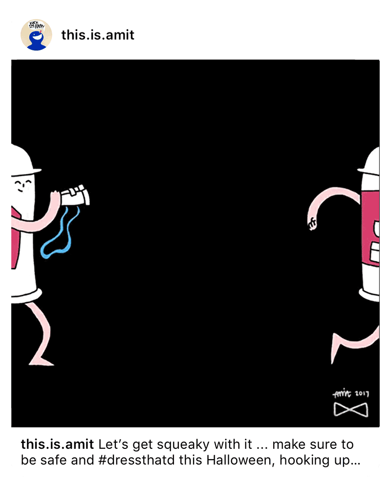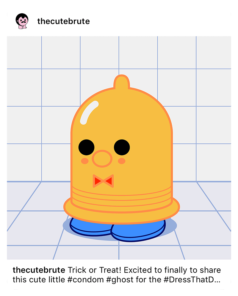 We teamed up with a new gay dating app, Chappy, to create an Instagram branded content series around Halloween to promote safe sex. Partnering with 16 of the most creative artists and influencers on Instagram, we directed each artist to design a costume on a condom in their unique style and post in their unique voice using #DressThatD