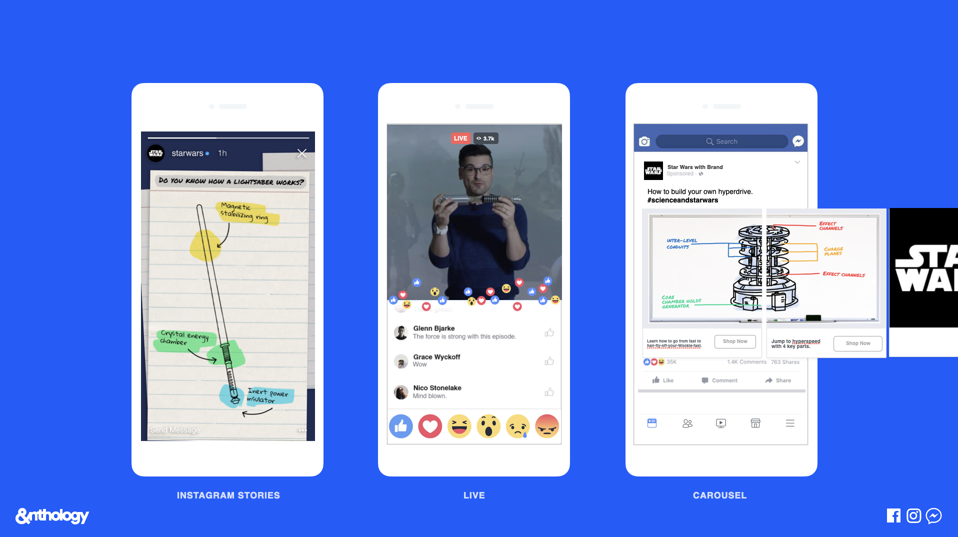 Together with LucasFilm and IBM we created the multi-part Science & Star Wars show diving into the science & fiction behind your favorite innovations from the iconic franchise. Along with our host, we brought in Watson who was trained on the entirety of the Star Wars canon in order to be the most knowledgable fan in the galaxy